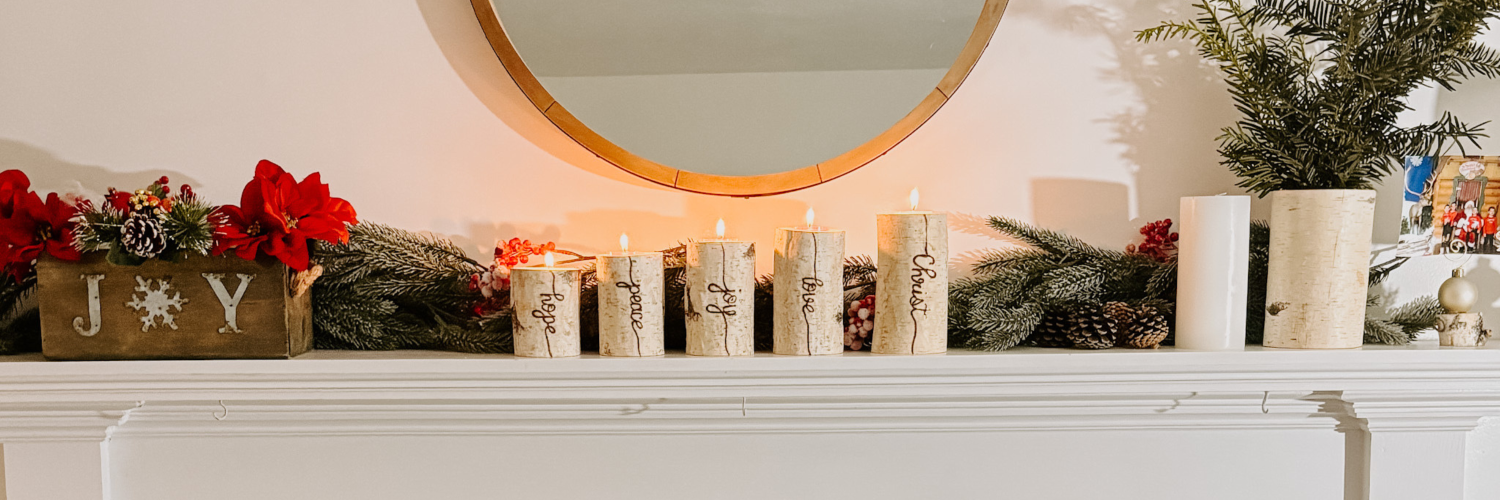 Birch Log Holiday Taper Candle Centerpiece with Greenery