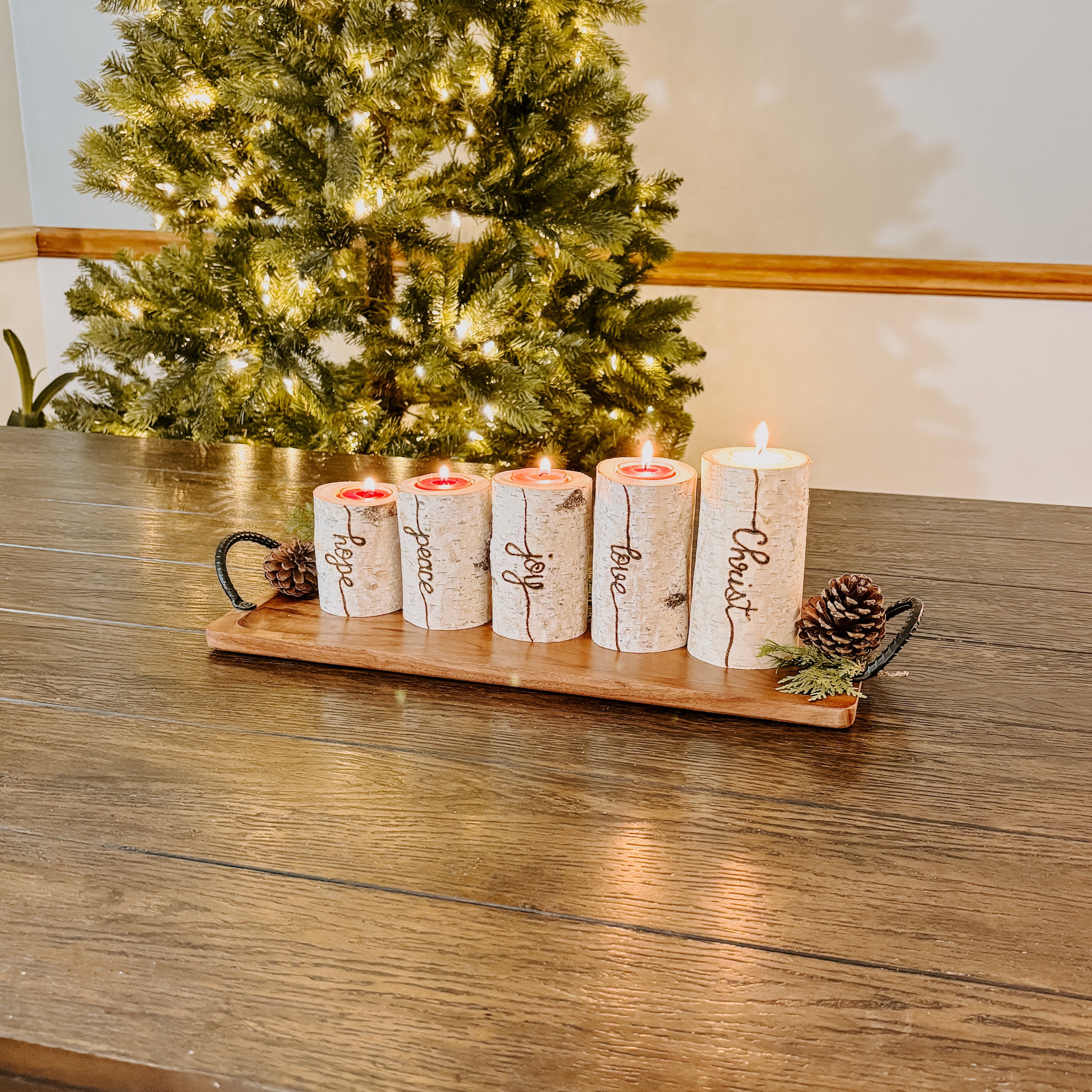 5 Candle Gifts of Christmas Birch Advent Wreath Set