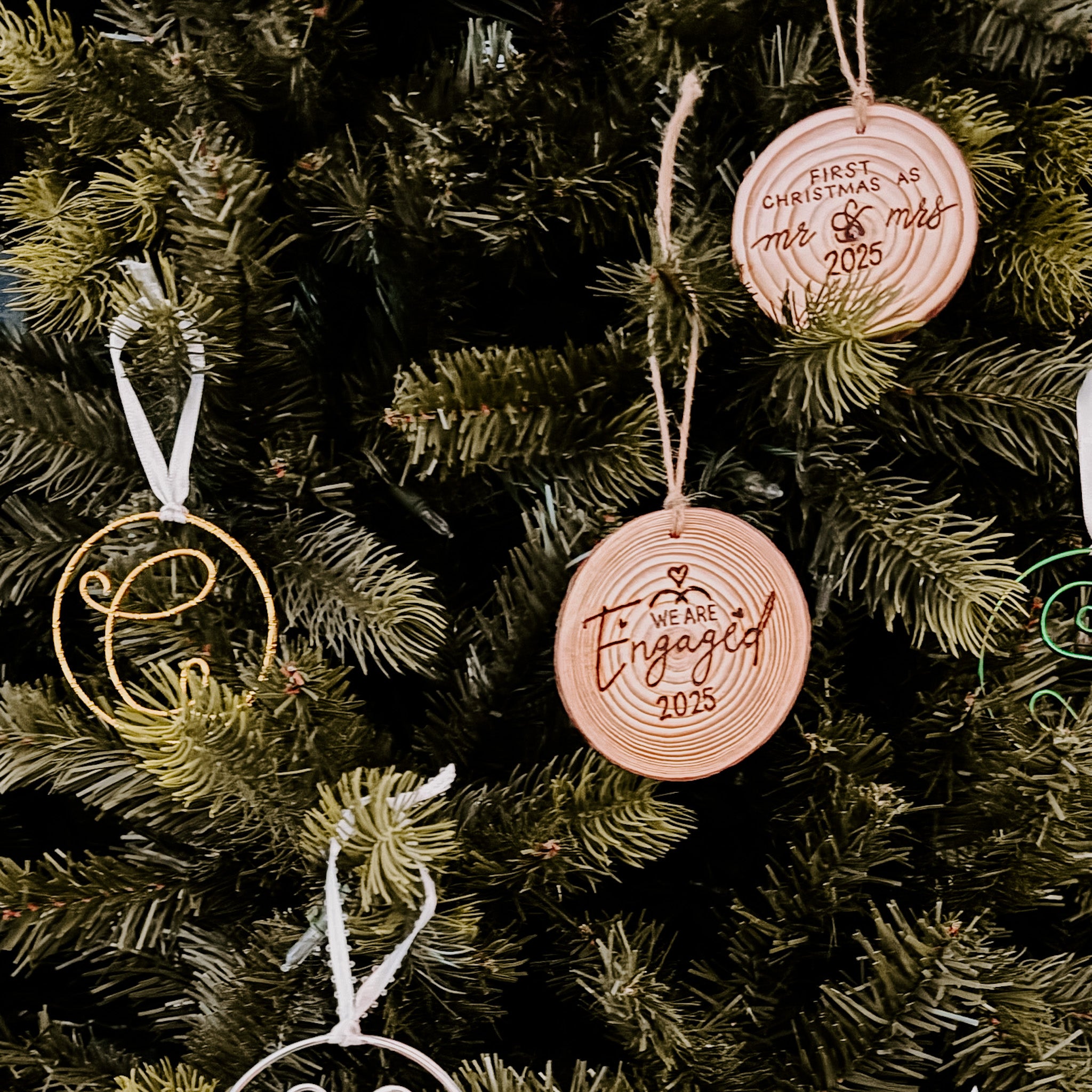 First Christmas as Mr and Mrs Wood Slice Ornament