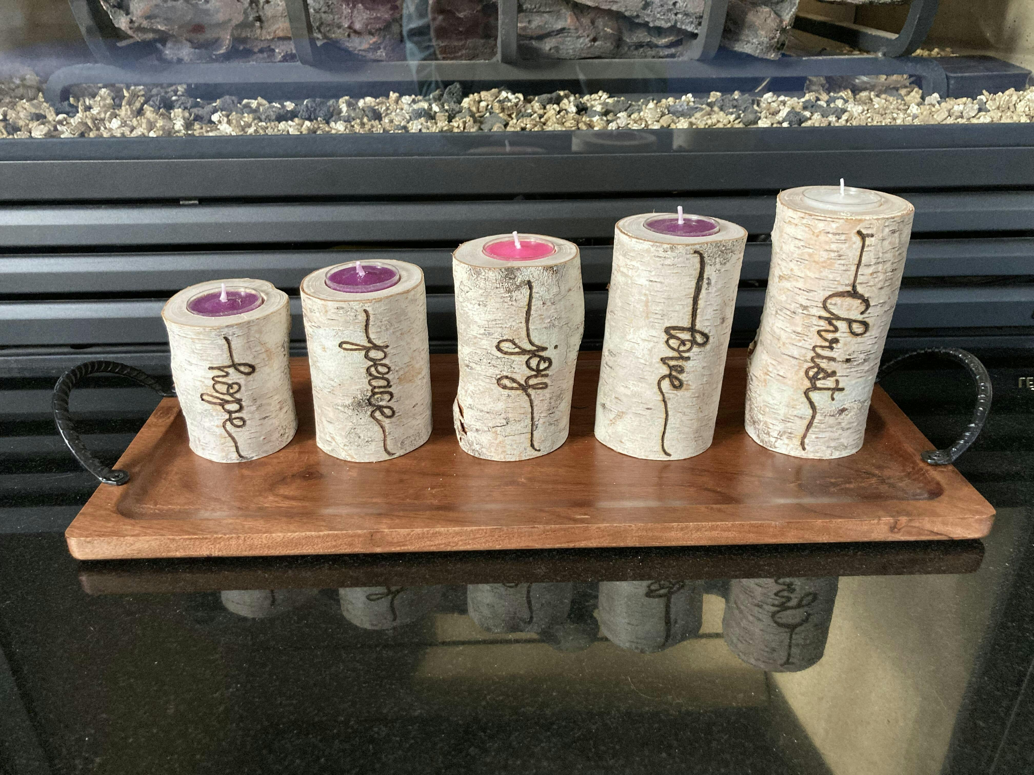 INCLUDES: This listing is for the wooden tray only. Candles and décor can be purchased separately.